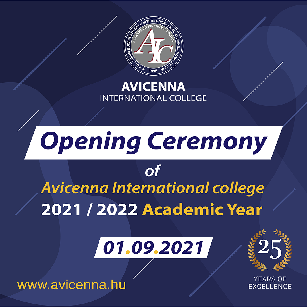 We would like to cordially invite you to the opening ceremony for the academic year on Wednesday, 1st of September 2021 at 11.30 AM in room 209 of Avicenna International College (1089 Budapest, Orczy út 3-5).