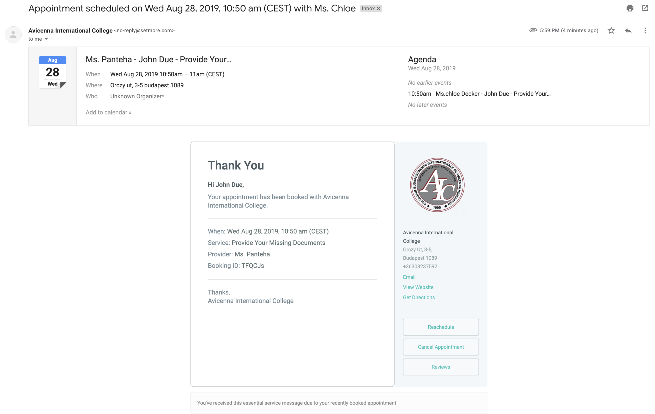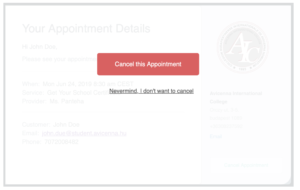 Our colleagues at Avicenna International College have the right to cancel or reschedule an appointment. If an appointment is modified you will be notified through email. You should always check your Avicenna email to remain updated about all events and news at AIC.
