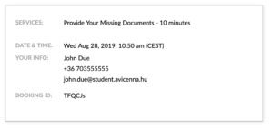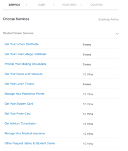 You will receive an email and SMS with your appointment details and the name of the person at the “Student Center” who is responsible for your appointment.