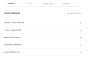 We have developed the “Appointment Booking System” for your convenience. Whenever you want to come to the “Student Center” or meet the financial officer or meet any of the college teachers or authorities, you should make an appointment online via this booking system. Please follow the steps explained below. It is easy.