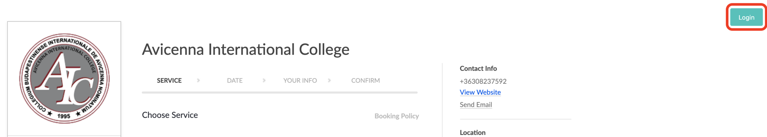 To use Avicenna International College Appointment System you have to register to the system. Click on the Login Button in the right corner of the page.