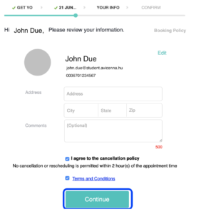 In the next window, you can see your appointment information. Please check the service name, date and time of your appointment and your personal information and if everything is correct then click on the “Book My Appointment” button.