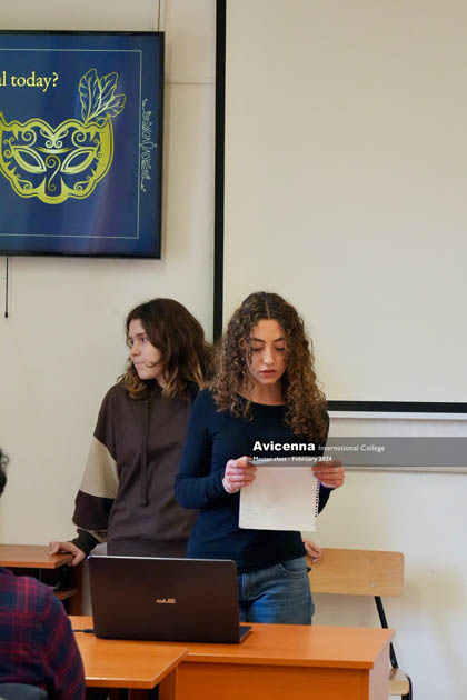 Among them the Italian Erasmus students, the 8 girls from the Umbria region who were happy to tell their part, to show us how they celebrate Carnival in their local communities. Their presentations were well received by their classmates as they were showcasing local traditions and foods that are associated typically with the Carnival season in Italy and specifically in Umbria where they have their own traditions maybe less known than the Venetian Carnival, we all know too well. Highlighting the event, we had 8 Spanish adult guests who could compare the Italian traditions to their own customs regarding the Festival and Carnival Season.