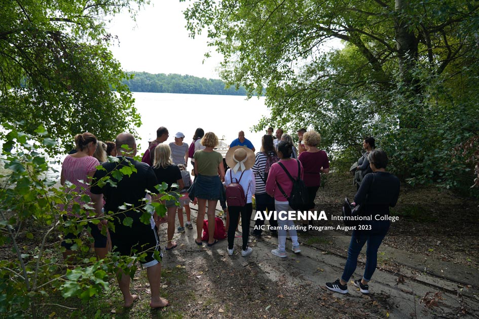 The community spirit was excellent, and we are happy to say that we had Colleagues from all walks of Avicenna and not only the teaching staff. Among our team members you could find Husnah from the Reception and Monika and Ági from the kitchen along with almost all of our Student Centre Colleagues. The point of this water-born adventure was exactly that, to make all the staff work together or shall I say row together to achieve one common goal that is to move ahead. The target was the Lupa island and to reach it we had to clock in 4 water kilometres and slide on the water as fast and neat as possible to reach the island where lunch was wating for us. It took us an hour and a half to reach the Megyeri bridge and then one more half an hour to reach the island itself.