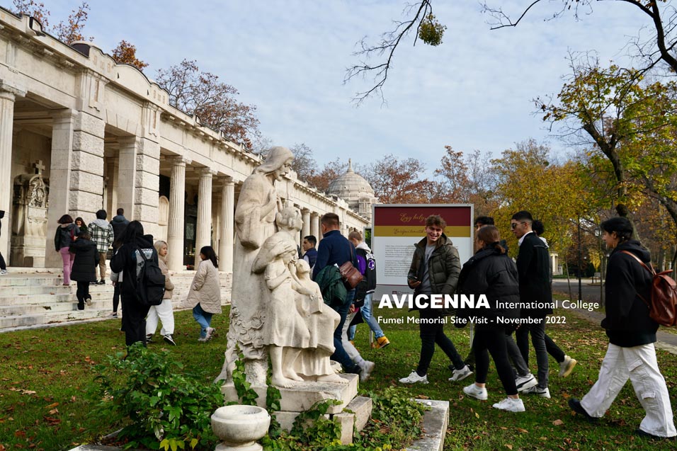 The visit was a free guided tour provided by the professionals of the Nemzeti Sírkert (“national graveyard”). In this graveyard are to be found the most renowned and most-well known Hungarians buried since the mid-19th century. Wandering around the graves and memorials, one can get an insight into the stories and dramas of Hungary’s past 170 years. Since Avicenna hosts majorly international students, it was an excellent opportunity not only to enhance their knowledge outside the classroom, but also to help them contextualize Hungary’s historical heritage.