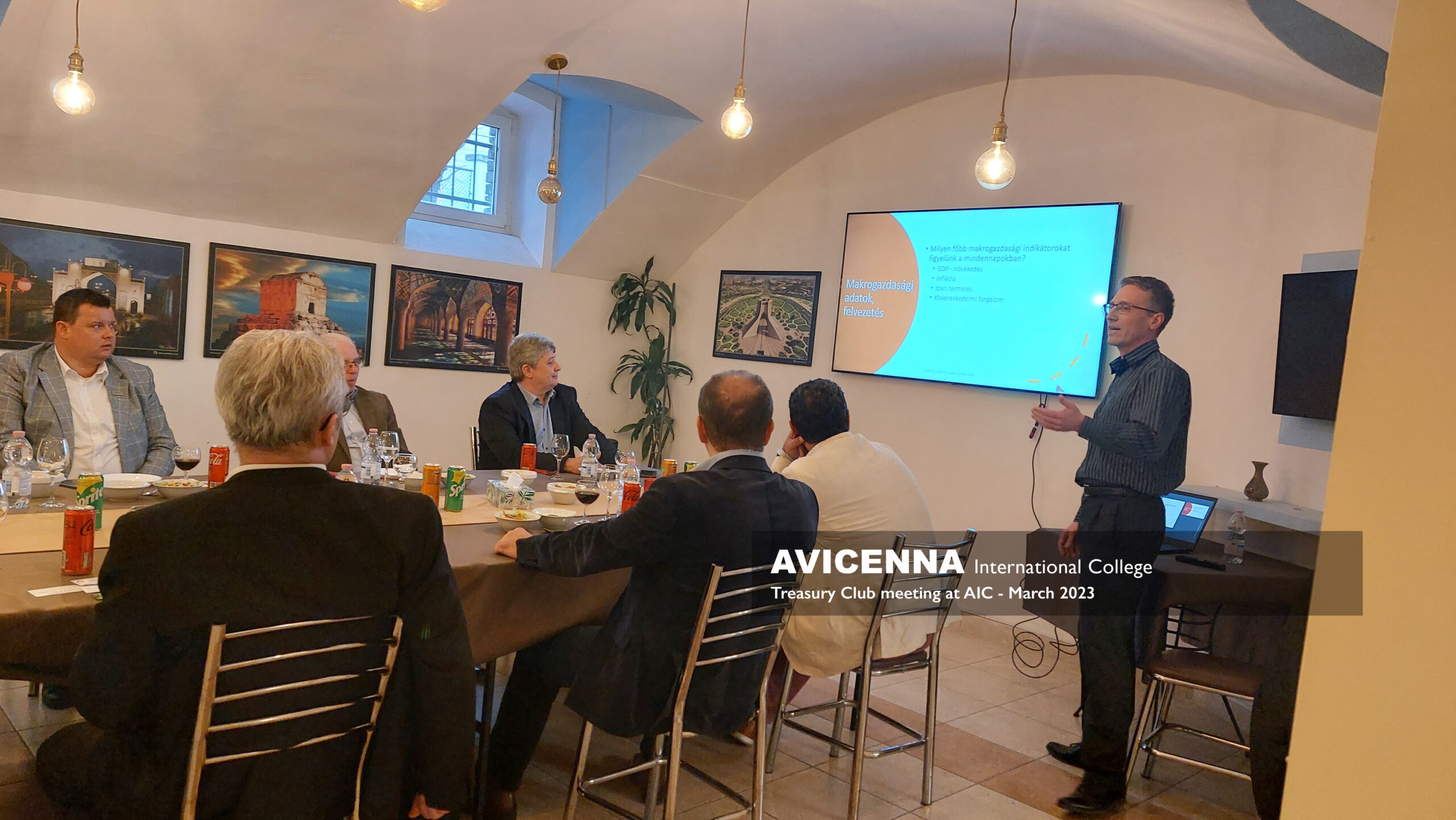 2023. március 30-án az a megtiszteltetés érte az Avicenna Holdingot (AH), hogy a magyarországi Vállalati Pénzügyi Vezetők Egyesülete (http://www.treasuryclub.hu/english/Index) – népszerű nevén a Treasury Club – a cég Orczy úti épületében tartotta havi rendszerességű szakmai találkozóinak aktuális ülését. A rendezvényen házigazdaként Dr. MirzaHosseini Shahrokh, AH elnök üdvözölte a vendégeket és röviden bemutatta a Holding tevékenységét, majd átadta a szót Andorkó László devizapiaci szakértőnek, a nap szakmai előadójának, aki a „Mit mutatnak az előrejelző indikátorok a gazdasági kilátásokról 2023-ban?” témában tartott előadást és vitaindítót.