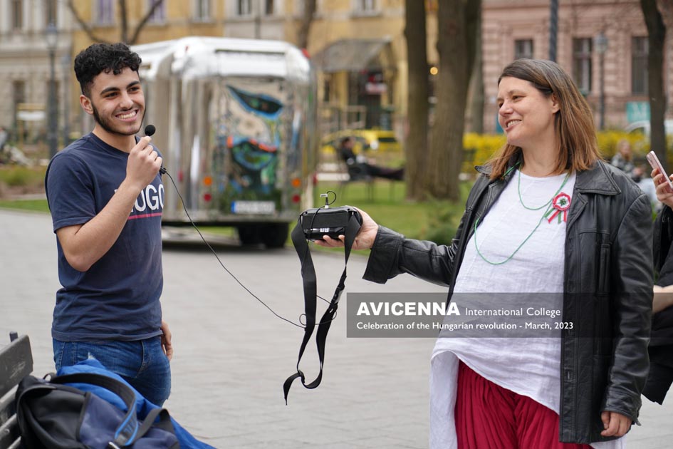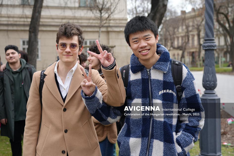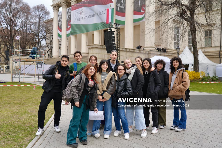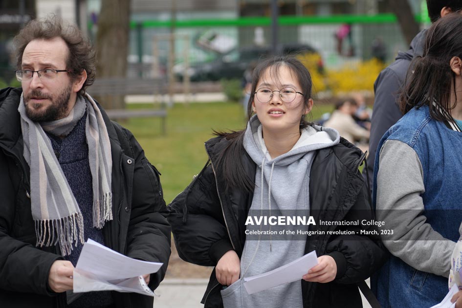 On March 14th, 2023, Avicenna students gathered on the steps of the National Museum in Budapest to recite Sándor Petőfi’s poem, “Nemzeti dal” or “National Song”. The event was organized to commemorate the 1848 Hungarian Revolution, which began on the same steps of the National Museum, where Petőfi himself recited his poem to a crowd of revolutionaries. The recitation by Avicenna students aimed to pay tribute to Petőfi’s poem and its significance in Hungarian literature and national identity. The students, who come from various countries, including Hungary, recited the poem in Hungarian, showcasing their commitment to the country’s culture and history. The recitation was also an opportunity for the students to connect with Hungary’s literary and cultural heritage, as well as to learn more about the country’s history and national identity.